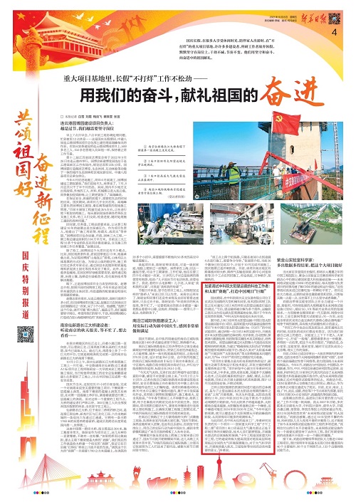 10月8日,《新华日报》在第四版《用我们的奋斗 献礼祖国的奋进》中对我公司《加紧调试中科院太阳望远镜的科技工作者:和太阳“赛跑”,打造中国观日“巨眼”》进行报道,以下是报道原文: